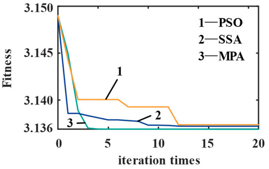 (4) Marine memory update: The fitness function value of the prey matrix is calculated, and the elite matrix is updated accordingly. If the convergence requirement is met, the iteration ends, and vice versa.