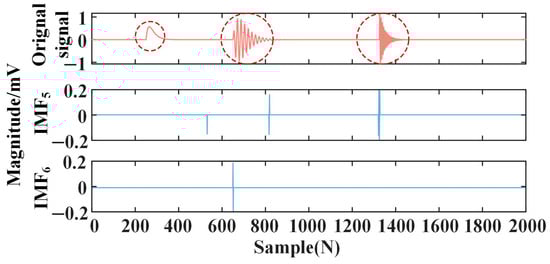 In (34), , and , where is a logical judgment function, which satisfies the condition to return 1; is the calculation of kurtosis; is the standard deviation of IMFn; and is the mean value of IMFn.