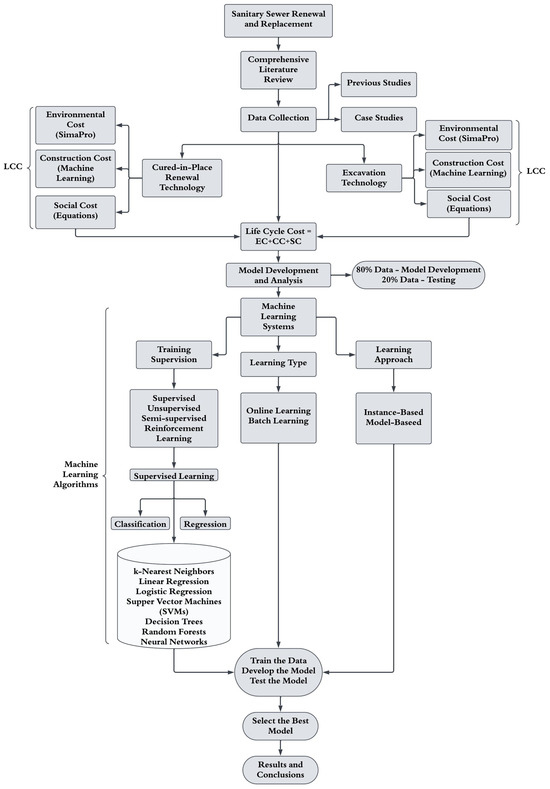 - Serajiantehrani, R. Development of a Machine Learning-Based Prediction Model for Construction and Environmental Costs of Trenchless Sprayapplied Pipe Linings, Cured-In-Place Pipe, and Sliplining Methods in Large Diameter Culverts; The University of Texas at Arlington: Arlington, TX, USA, 2020. [Google Scholar]
