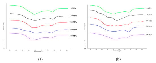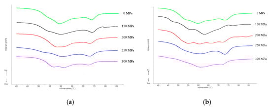 Myofibrillar proteins, which account for approximately 55% of all muscle proteins, can also be affected by HHP treatment. Differential scanning calorimetry (DSC) is the most straightforward procedure and effective method to register the process of myofibrillar protein denaturation [].