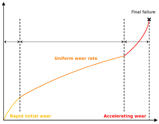 - Initial Wear Phase: A gradual increase in wear during the early stages of operation.
