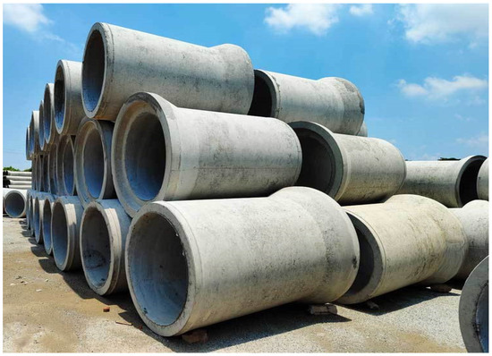 In an electric utility corridor project located in a soft soil area, “F”-type steel reinforced concrete pipes with an outer diameter of 3600 mm and an inner diameter of 3000 mm are planned for use. “F”-type-steel-reinforced concrete pipes are named after the F-type joint that they use. Due to their excellent sealing performance and durability, they are widely used in urban engineering projects [19] as shown in Figure 5. Each pipe section is 2.5 m in length, with a total jacking length of 625 m. The soil layer of the pipe consists of silty clay.
