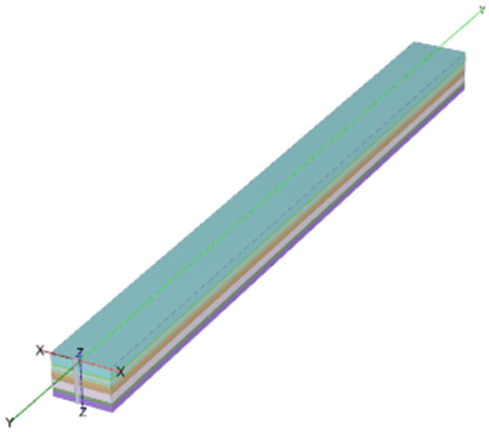 The soil adopts the Mohr–Coulomb model with a “drained” condition. The groundwater level is located 11 m below the ground surface. The basic parameters of the soil layers are shown in Table 4. The soil model is shown in Figure 6.