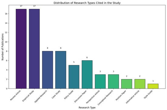 Figure 2 highlights the variety of research contributions, with conference papers and journal articles dominating the cited references. These publication types often contain detailed case studies, experimental findings, and reviews that are critical for understanding the application of AI in education. On the other hand, Figure 3 demonstrates the rapid growth of research in recent years, especially post-2020, driven by advancements in generative AI technologies such as ChatGPT. Together, these figures provide an overview of the diversity and timeliness of research informing this study.