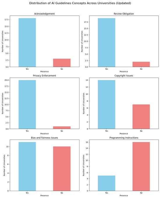 - Jiao, J.; Afroogh, S.; Chen, K.; Atkinson, D.; Dhurandhar, A. The global landscape of academic guidelines for generative AI and Large Language Models. arXiv 2024, arXiv:2406.18842. [Google Scholar]