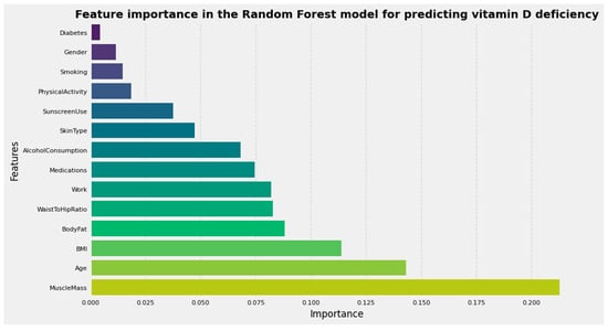 - Alloubani, A.; Abuhaija, B.; Almatari, M.; Jaradat, G.; Ihnaini, B. Predicting vitamin D deficiency using optimized random forest classifier. Clin. Nutr. ESPEN 2024, 60, 1–10. [Google Scholar] [CrossRef]