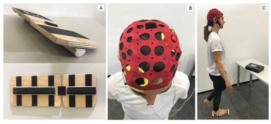 (A) Blackboard instability device; (B) position of the tDCS electrodes; (C) combined therapy applied.