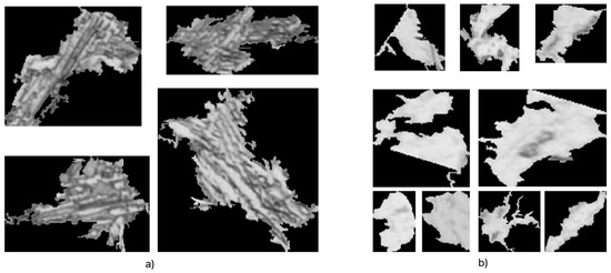 Example of segments extracted from the image using superpixel segmentation. (a) Bainite segment. (b) Non-bainite segment. Original proportions were preserved.