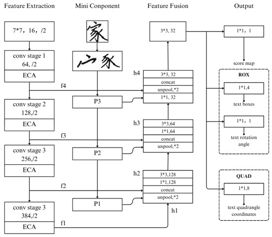 In this paper, we use the self-built mini-components dataset to perform convolution operation on the Chinese character image to extract deep and shallow features, and fuse these features with the feature maps generated from the EAST feature extraction layer via FPN, and enhance the network’s sensitivity to mini-components. The specific structure is shown in Figure 2.