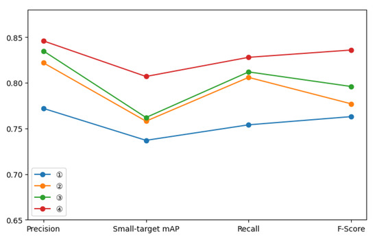 To validate the performance improvement of the proposed model modifications on the overall architecture, ablation studies were conducted on our custom dataset. As shown in the Table 2, method ① is the EAST base network (Basic), method ② is the mini-component dataset through the feature pyramid as a multi-scale feature fusion (Mini-Component-Basic), method ③ is the addition of the attention mechanism of the ECA module (ECA-Basic), and method ④ is the CEE model in this paper. A comparative analysis of different approaches is presented in Table 2, demonstrating that the proposed model achieves significant accuracy improvement through the integration of the attention mechanism and multi-scale fusion strategy.