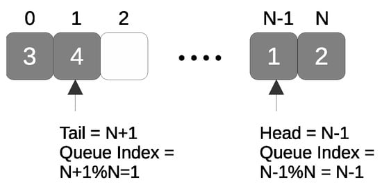 Figure 1. Circular buffer queue structure with a size of N. “Head % queue_size” points to the next dequeue element, and “Tail % queue_size” points to the next enqueue element. - Items: This is the actual centralized ring buffer to store queue elements.