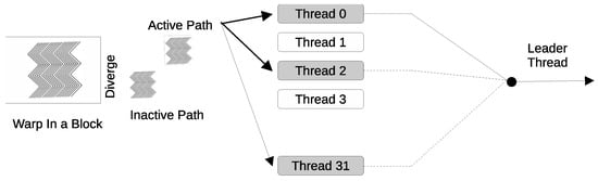 - Xiang, P.; Yang, Y.; Zhou, H. Warp-level divergence in GPUs: Characterization, impact, and mitigation. In Proceedings of the 2014 IEEE 20th International Symposium on High Performance Computer Architecture (HPCA), Orlando, FL, USA, 15–19 February 2014; pp. 284–295. [Google Scholar]