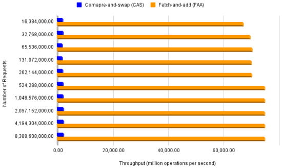 Throughput of CAS and FAA operations in a contended scenario (8 billion simultaneous requests).
