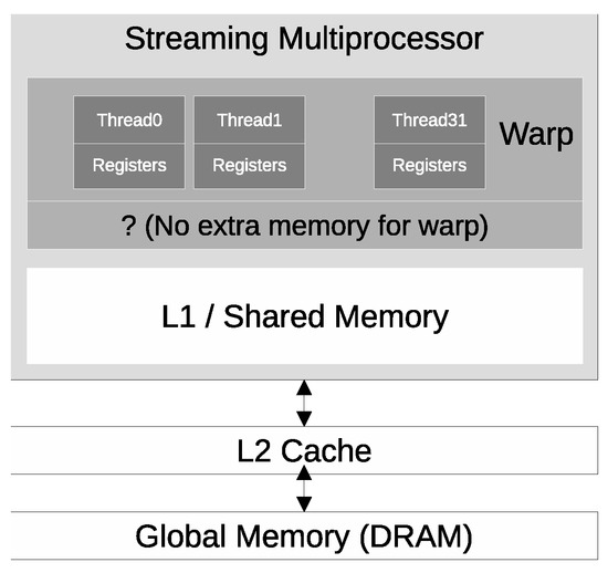 GPU architectures structure memory in three primary levels: global memory, shared memory (thread-block level), and registers (thread level), as shown in Figure 6. However, CUDA does not provide a dedicated memory layer for warps, which can introduce inefficiencies in algorithms (e.g., BACQ) operating at the warp level due to the lack of an explicit caching mechanism.
