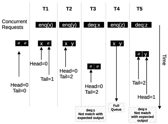 - Tsigas, P.; Zhang, Y. A simple, fast and scalable non-blocking concurrent fifo queue for shared memory multiprocessor systems. In Proceedings of the Thirteenth Annual ACM Symposium on Parallel Algorithms and Architectures, Heraklion, Greece, 4–6 July 2001; pp. 134–143. [Google Scholar]