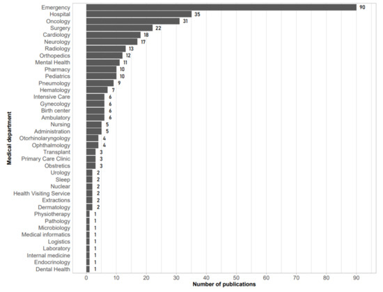 Previous studies have demonstrated that DES has proven effective in improving the ED by reducing WT and increasing service capacity [34,35,36]. However, our analysis reveals that some healthcare departments, such as gynecology, urology, and obstetrics, among others, have a smaller number of publications.