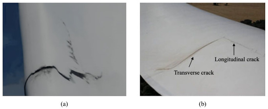 - Miao, X.-Y.; Chen, X. Structural transverse cracking mechanisms of trailing edge regions in composite wind turbine blades. Compos. Struct. 2023, 308, 116680. [Google Scholar] [CrossRef]