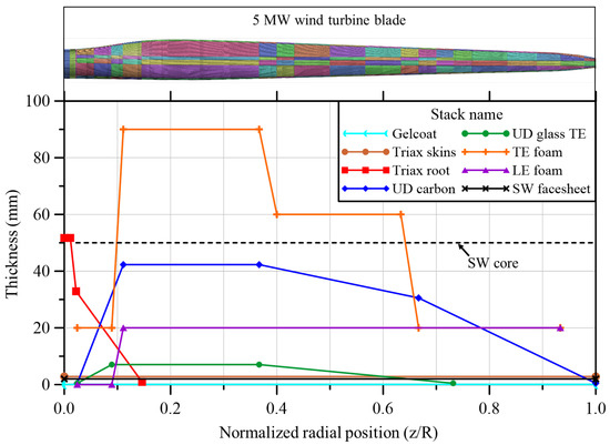 - Resor, B.R. Definition of a 5MW/61.5m Wind Turbine Blade Reference Model; Sandia National Lab. (SNL-NM): Albuquerque, NM, USA, 2013; p. 53. [Google Scholar]
