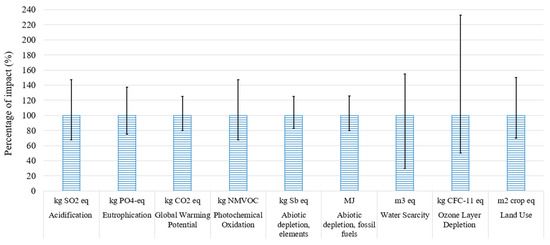 Results uncertainty analysis as a function of error values for each environmental impact category.