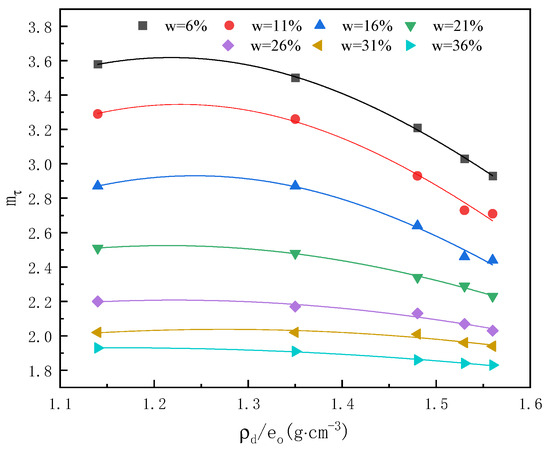 Figure 6 also shows that the structural parameters are more discrete with respect to the pattern of change in the dry density and pore ratio ratios. Given the same soil source and moisture content, the structural parameters of loess are affected not only by dry density and void ratio, which reflect soil compactness, but also by other physical properties of loess.