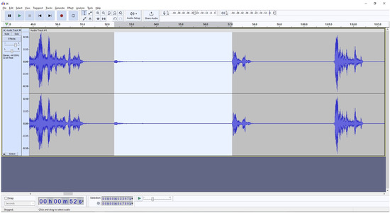 Auditory signals were recorded using the laptop’s microphone. The audio analysis software was Audacity version 3.7.1 (https://www.audacityteam.org/, accessed 28 August 2023).
