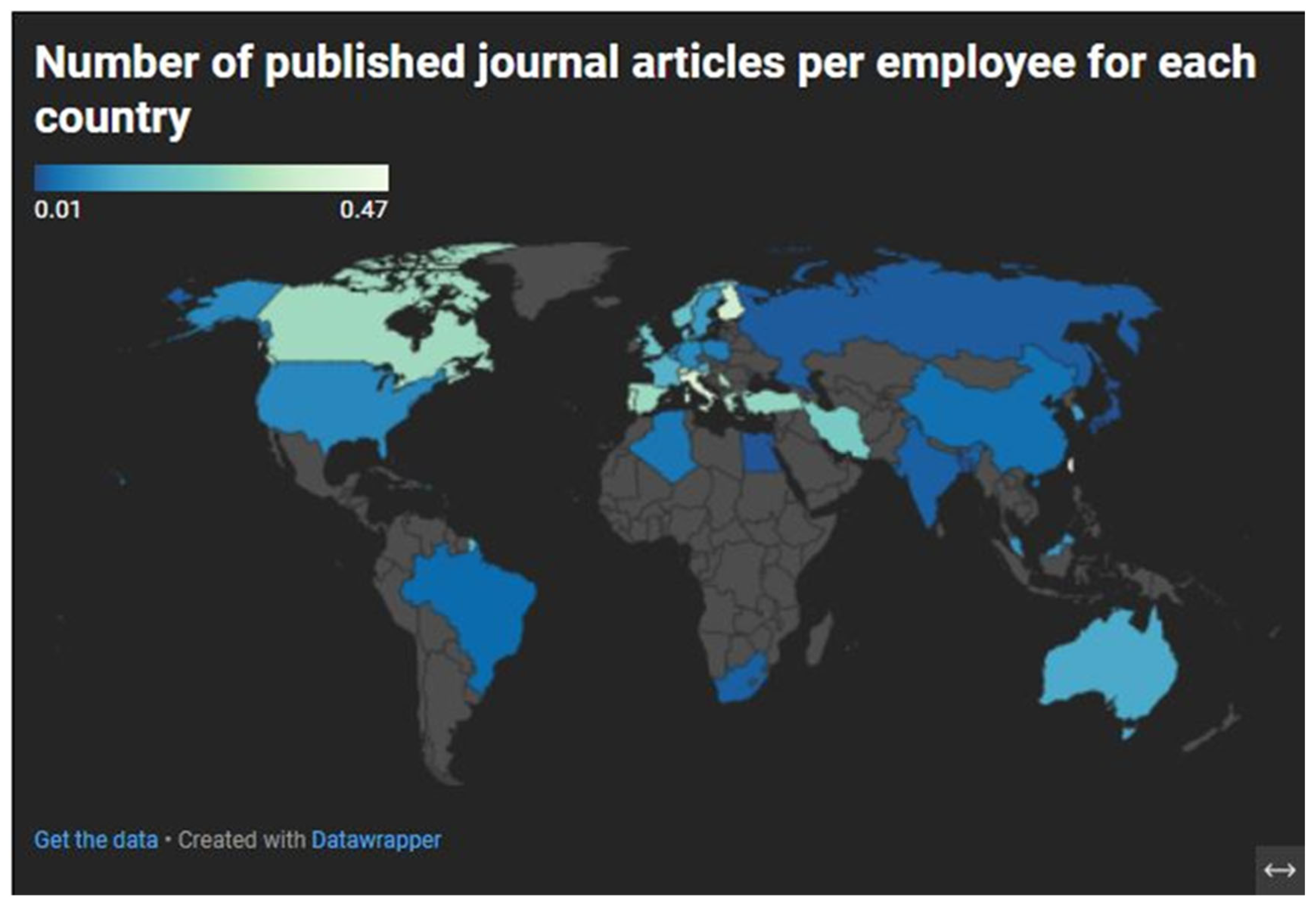 - Which countries are most involved with the four techniques in relation to their workforce?