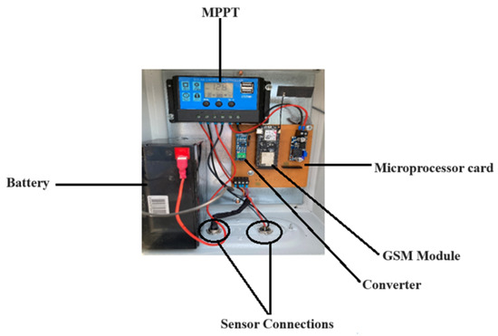 One of the most remarkable features of the monitoring station is its energy independence. The integration of a solar panel and Maximum Power Point Tracking (MPPT) solar energy control unit allows the system to operate autonomously without the need for an external power source [34]. This design reduces operational costs and enhances the system’s reliability in remote or off-grid areas. The ability of the system to function for approximately a week solely on battery power, even without solar input, demonstrates its durability and robustness under varying weather conditions. This feature provides significant advantages in terms of sustainability and uninterrupted data collection, which are critical for effective environmental monitoring.