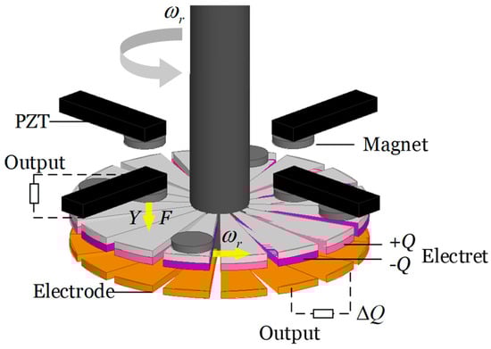 The non-contact electret–piezoelectric coupling structure is shown in Figure 1.