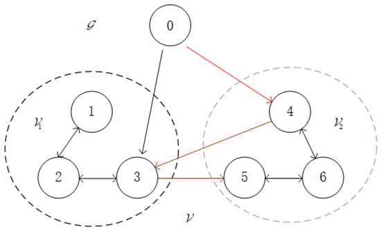 Figure 1, the BFMASs in the experiment are composed of one virtual leader and six followers, with a communication topology structure. The union of two sets is the directed graph’s vertex set,