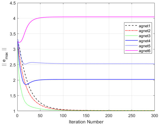 Figure 6. It can be observed that the maximum tracking error of each agent cannot converge to an ideal range.