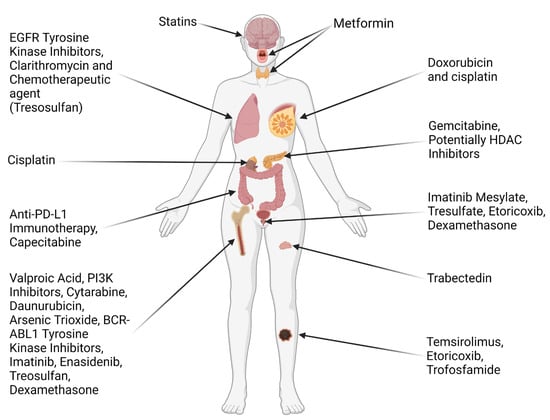 - Hijazi, Μ.A.; Gessner, A.; El-Najjar, Ν. Repurposing of Chronically Used Drugs in Cancer Therapy: A Chance to Grasp. Cancers 2023, 15, 3199. [Google Scholar] [CrossRef]