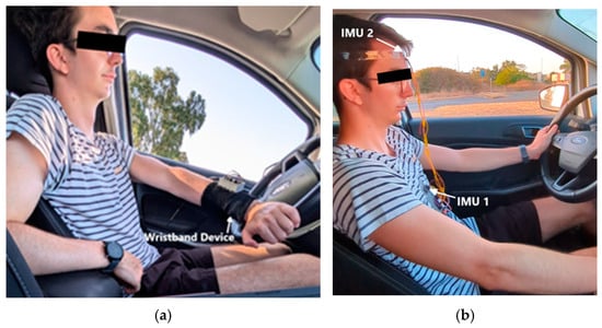 From the extensive literature on topics referring to the analysis and design of monitoring systems for safe driving, it is worth noting examples of the variety of proposed solutions using sensorization of drivers and cars that are combined with procedures of data elaboration. In [18], the authors present a monitoring system with IMUs and EMG sensor installed on the head and neck to detect drivers’ emotional responses. Reference [19] proposes a detection of abnormal driving by using signals from EMG sensors. In reference [20], a visual detection of drivers is used to evaluate driver distraction by using driver data through neural network algorithms. Driving behavior is formulated in [21] by using signals from distributed sensors that are installed on the driver and on the car. The authors of [22] elaborate on the detection of inattention and drowsiness status of a car driver by using a sensorization of the driver motion and cardiac response.