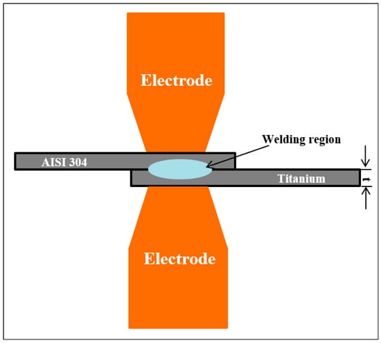 Austenitic stainless steel (ASS) is widely utilised to make metro vehicle components for modern urban mobility due to its affordability, strength, corrosion resistance, and resistance spot welding (RSW) weldability [,,,,,]. Due to its high thermal expansion coefficient, austenitic stainless steel (ASS) cannot be welded with traditional arc welding. Thus, the RSW technique is regarded as the best welding method for ASS metro vehicle components [,]. The aerospace industry commonly uses titanium grade 2 due to its excellent properties, such as low weight, high strength, corrosion resistance, and good fatigue properties [,], making it suitable for use in industrial sectors like aviation and medical sectors [,].