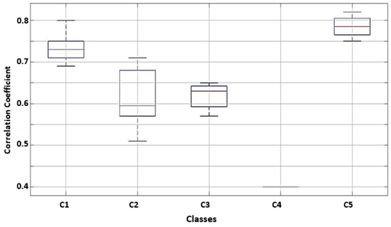 - The NEDS vectors associated with the columns of the matrix [CC] should be integrated into K classes:where CCn, n = 1, …, NEDS, corresponds to the columns from the matrix [CC] including the correlation coefficients between the EDS n and the other EDSs from the EDNs and CCn,NEDS represents a generic element from the column n, n = 1, …, NEDS.