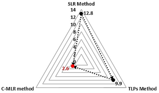 where P(r)t,m is the real value of the active power recorder in the EDS m at the hour t, t = 1, …, T, and P(e)t,m is the estimated value of the active power in the EDS m at the hour t, t = 1, …, T, with the MLR model.