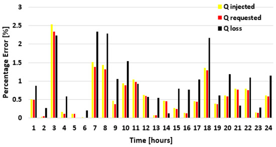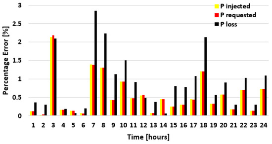 | Hour | Pinjected [MW] | Qinjected [MVAr] | Prequested [MW] | Qrequested [MVAr] | Ploss [MW] | Qloss [MVAr] | Qcapacitive [MVAr] |