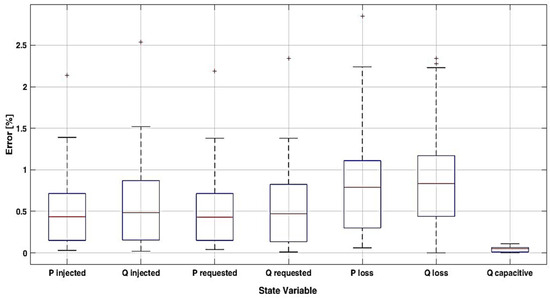 where Q(e)t,m is the estimated value of the reactive power in the EDS m belonging to the set of the EDSs non-included in the “candidate” classes at the hour t, t = 1, …, T, and Q(e)t,p is the estimated value of the reactive power in the EDS m belonging to the set of the pilot EDSs with SCADA measurements integrated at the hour t, t = 1, …, T.