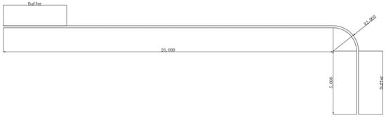 The length of the pipeline in the grout filling system varies, and during numerical simulations, a buffer zone is commonly included to ensure adequate grout flow. In the experiment, an extra horizontal section of 3 m to 5 m is chosen as the buffer zone. In this study, a 5 m long straight pipe is selected as the buffer zone. Based on the field conditions, this study simulates a 21 m long horizontal straight pipe and a 90° elbow with a 2 m bending radius, using 16 Mn wear-resistant seamless steel pipes. And based on the process of blockage formation in the on-site grouting pipeline, blockages can be classified into attachment-type blockages (A-blockage), deposition-type blockages (B-blockage), and composite blockages (C-blockage), as shown in Figure 4 []. Furthermore, according to the cause and nature of the blockage, they can be categorized into partial blockages and complete blockages. Partial blockages can be further divided into single blockages and multiple blockages [].