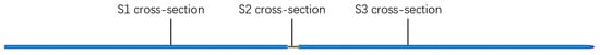 As shown in Figure 17, this study analyzes the cross-sections S1, S2, and S3 located at distances of 800 mm, 13,000 mm, and 18,000 mm from the pipeline’s inlet and outlet, respectively, as the sections for the analysis.