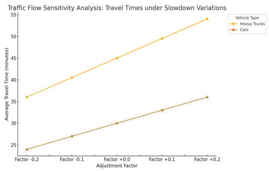 Traffic flow sensitivity analysis: travel time under slowdown variations.