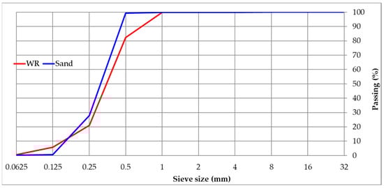 Grain size distribution of sand and WR.