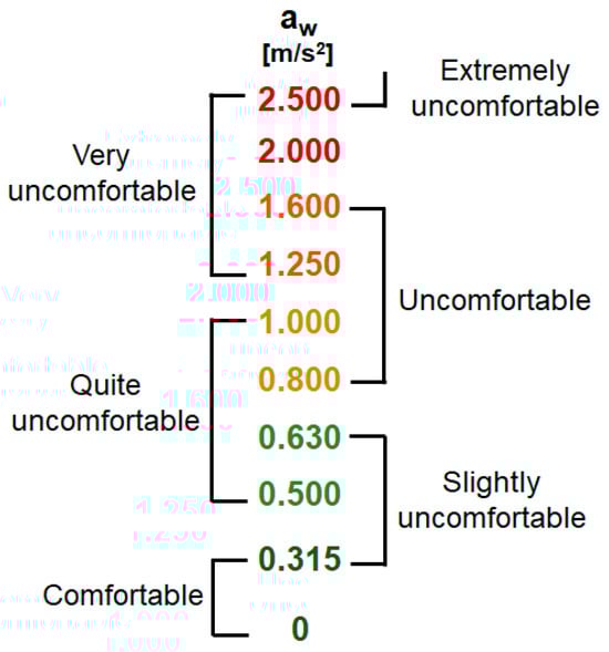 Six-point ride comfort scale according to ISO 2631-1:1997 [33].