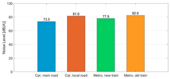 Both the intensity and nature of noise can vary depending on the type of vehicle and the operating conditions. Sources of noise can be the power units, the contact of tyres with the road surface or wheels with the rails, induced by the air flow around the body, or related to announcements made. The perception and annoyance of noise are influenced by the level of noise intensity, its variability, and its frequency. As with other factors, the perception of acoustic comfort also depends on the exposure time. In addition, the characteristics of the human ear cause a significant increase in the perception of loudness with even a small increase in sound intensity [35].