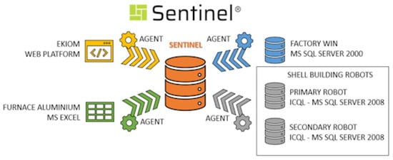 In the end, the management of all input sources was performed, as shown in Figure 4. Four different PDManager capture agents were developed to integrate these data sources. Subsequently, all the information was centralized in a single database, allowing Sentinel to utilize it for data distribution and visualization in this specific use case.