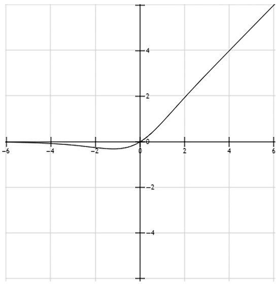 The YOLOv4 algorithm is an enhanced version of the YOLOv3 algorithm. As illustrated in Figure 1, YOLOv4 comprises three main components: the backbone feature extraction network CSPDarknet53, the feature fusion network PANet, and the prediction head. Specifically, CSPDarknet53 integrates Darknet-53 with CSPNet, incorporating partial dense blocks and transition layers. The backbone feature extraction process involves three steps: (1) performing convolution, normalization, and activation function operations on the input image; (2) conducting preliminary feature extraction through five Res_body blocks; and (3) extracting feature maps with higher semantic information from the last three Res_body blocks. These feature maps are then convolved and processed through Spatial Pyramid Pooling (SPP) before being fed into the PANet for further feature refinement. Finally, the prediction results are generated via three YOLO Head layers. Mish, used as the activation function, is defined by Equation (1) and visualized in Figure 2.