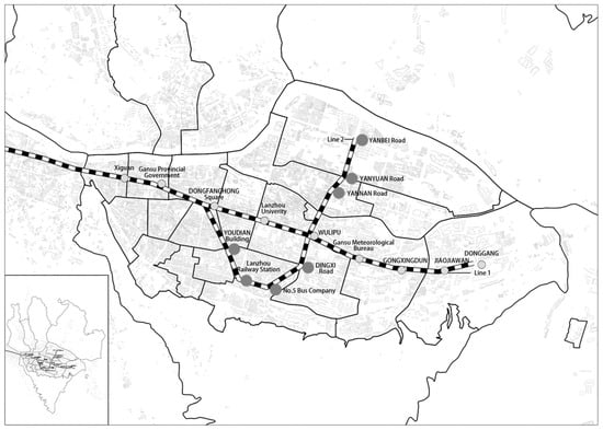 Research scope. The subject of this study is the 16 subway station areas in the central urban area of Lanzhou, located within (including along) the Chengguan District.