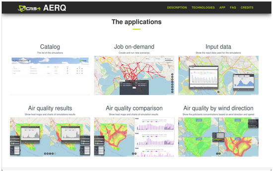 The job-on-demand interface manages computing resources to submit jobs, overseeing all necessary geoprocessing phases for AERMOD and its applications. It streamlines data flow and storage, simplifying system complexity for users. Through this interface, users can access specific software and tools for calculations, simulations, or data analyses directly from their web browser, eliminating the need for local software installation. Users with appropriate privileges can design new simulation scenarios, specify parameters, and submit tasks for processing on remote high-performance computing (HPC) servers as needed. The interface facilitates the preparation, control, and configuration of input files for the AERMOD atmospheric dispersion modeling system. This includes details about pollution sources (e.g., factories, power plants, new roads, vehicle emissions), meteorological data, terrain characteristics, receptor locations (where pollutant concentrations are measured), and other settings. AERMOD’s numerical applications require advanced and diverse technical skills and significant computational resources for running the model (e.g., image processing and scenarios preparation). AERQ hides this complexity from the user who is challenged only to the design of significant scenarios of interest and not in data I/O management. The AERQ job-on-demand interface enhances the efficiency and usability of the AERMOD model for air quality analysts, engineers, and environmental scientists by minimizing manual input and providing streamlined access to necessary datasets and configurations (Figure 4). This ultimately improves accuracy in air quality modeling projects.