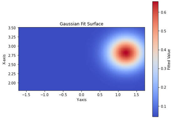 The mean function outputs the expected value at any coordinate and is visualized as the radiation map when uncertainty information is not shown. The kernel, also called the covariance function, outputs the relatedness between any coordinate, x, and any other coordinate, . This kernel can be thought of as the fabric of the estimated surface, influencing the shape and smoothness of the map in regions that have not been directly measured. Equation (1) provides the necessary information to evaluate the normal distribution given in Equation (2), which represents the estimated range of possible radiation values at any specific coordinate, x. Here, is the predicted mean radiation level at that coordinate, and is the variance that dictates the width of the distribution curve.