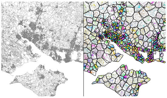 While our methodology can be applied to any sets of open and public transport networks, our experiment results are based on the transport networks of the Solent region of the UK, which can be summarised as follows. The Solent transport network is composed of pedestrian, bike and road open networks, as well as bus, ferry and train public transport services. Ferries connect the Isle of Wight with the mainland and connect the adjacent peninsulas of the coast of the mainland. Trains connect the main suburbs, towns and cities on the same islands, while the bus network provides the same plus a more extensive range of connections between local conurbations. The pedestrian transport network is defined by 202,816 nodes and 523,580 edges. The road network is defined by 141,743 nodes and 313,373 edges. The e-scooter transport network is defined by 204,037 nodes and 524,917 edges; however, e-scooters are restricted by geofence constraints to the cities of Portsmouth and Southampton. The public transport network consists of bus, ferry and train routes, of which there is a total of 1272 unique routes and 5830 stops. GTFS data define the timetables of the public transport networks as well as the dates that different public transport trips are available. Regarding the modelling of connections between different transport networks, nodes are generated in each open transport network corresponding to each public transport stop along with edges connecting those nodes to the nodes of the nearest existing edges in those networks. For connections between open transport networks, connection nodes are similarly generated if the nearest edges in the other networks are within some specified small distance. These additional connection nodes and edges are included in the totals reported above.