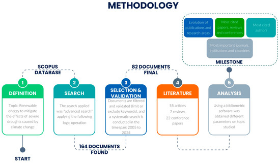 The bibliometric analysis covers the period from 2005 to 2024, selected due to a notable rise in publications on renewable energy strategies for drought mitigation since 2005. This period captures the initial research interest and the recent acceleration in scientific output. Unlike systematic reviews, bibliometric analysis maps the structure of scientific knowledge in a domain.